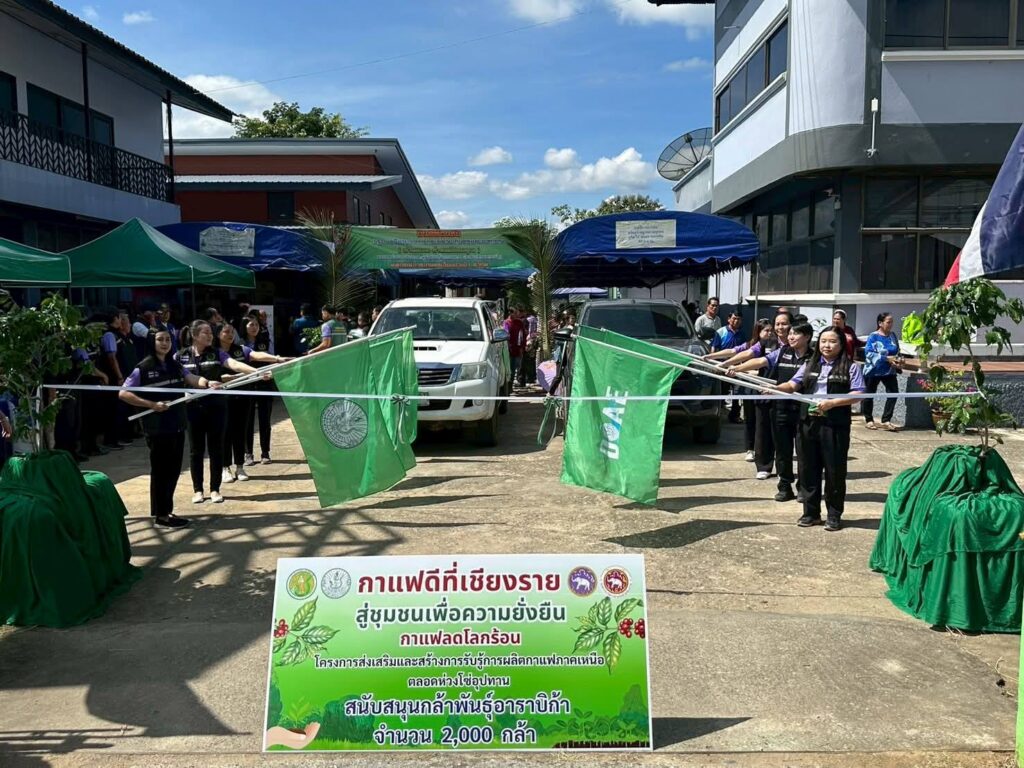 วันที่ 24 ตุลาคม 2568 นายนเรศ ธำรงค์ทิพยคุณ รัฐมนตรีช่วยว่าการกระทรวงเกษตรและสหกรณ์ พร้อมคณะผู้บริหารกระทรวงเกษตรฯ ลงพื้นที่ตรวจราชการในจังหวัดเชียงราย และเป็นประธานในพิธี Kick Off โครงการส่งเสริมและสร้างการรับรู้การผลิตกาแฟภาคเหนือตลอดห่วงโซ่อุปทาน ณ สหกรณ์การเกษตรเวียงป่าเป้า จำกัด อำเภอเวียงป่าเป้า จังหวัดเชียงราย โดยมี นายพีรพันธ์ คอทอง อธิบดีกรมส่งเสริมการเกษตร พร้อมด้วยเจ้าหน้าที่สำนักงานเกษตรจังหวัดเชียงราย และหน่วยงานในสังกัดกระทรวงเกษตรและสหกรณ์ร่วมให้การต้อนรับ นอกจากนี้ รัฐมนตรีช่วยว่าการกระทรวงเกษตรและสหกรณ์ได้เป็นประธานในพิธี ปล่อยขบวนรถคาราวาน “กาแฟดีที่เชียงราย สู่ชุมชนที่ยั่งยืน” จำนวน 2,000 กล้า (พันธุ์อาราบิกา) เพื่อมอบให้เกษตรกรในอำเภอเวียงป่าเป้าเป็นกลุ่มนำร่อง และมีแผนดำเนินการขยายผล แจกจ่ายกล้ากาแฟพันธุ์ดีรวมกว่า 64,150 กล้า (พันธุ์อาราบิกาและโรบัสตา) ในพื้นที่จังหวัดเชียงรายภายในปี 2569 สำหรับโครงการดังกล่าวเป็นความร่วมมือระหว่างกรมส่งเสริมการเกษตร และหน่วยงานในพื้นที่ เพื่อส่งเสริมให้เกษตรกรภาคเหนือผลิตกาแฟคุณภาพสูงโดยใช้พันธุ์ดี ลดการปลูกในพื้นที่ไม่เหมาะสม และใช้ระบบการจัดการเกษตรแบบยั่งยืน เพื่อสร้างรายได้ เพิ่มพื้นที่สีเขียว และลดการเกิดฝุ่นละอองขนาดเล็ก (PM 2.5)