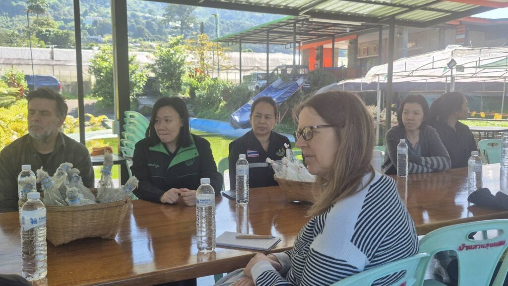 วันที่ 25 พฤศจิกายน 2568 นางสาววรวรรณ อังกสิทธิ์ รักษาราชการแทนผู้อำนวยการสำนักงานส่งเสริมและพัฒนาการเกษตรที่ 6 จังหวัดเชียงใหม่ มอบหมายให้ นางสาวจุลัยรัตน์ ยาฝั้น นักวิชาการเกษตรชำนาญการ ร่วมกับคณะผู้เชี่ยวชาญจาก CABI International เจ้าหน้าที่จากกองส่งเสริมการอารักขาพืชและจัดการดินปุ๋ย เจ้าหน้าที่ศูนย์ส่งเสริมเทคโนโลยีการเกษตรด้านอารักขาพืช จังหวัดเชียงใหม่ เจ้าหน้าที่กลุ่มอารักขาพืชสำนักงานเกษตรจังหวัดเชียงใหม่ เจ้าหน้าที่สำนักงานเกษตรอำเภอแม่ริมและผู้เกี่ยวข้อง ลงพื้นที่ติดตามการใช้สารชีวภัณฑ์ในการป้องกันกำจัดศัตรูพืช และให้คำแนะนำเกี่ยวกับการใช้สารชีวภัณฑ์ที่ถูกต้องให้แก่ศูนย์จัดการศัตรูพืชชุมชนตำบลโป่งแยง อำเภอแม่ริม จังหวัดเชียงใหม่ ซึ่งเป็นการดำเนินการภายใต้ โครงการ Strengthening institutional for biopesticide product in Thailand ซึ่งเป็นความร่วมมือระหว่าง กรมส่งเสริมการเกษตร และ CABI International