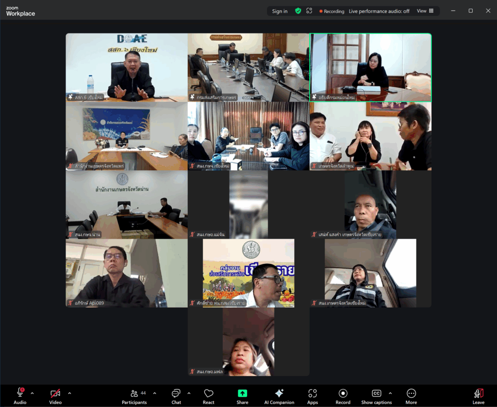 วันที่ 12 ธันวาคม 2568 สำนักงานส่งเสริมและพัฒนาการเกษตรเขตที่ 6 จังหวัดเชียงใหม่ ร่วมประชุมหารือเตรียมความพร้อมการจัดงาน Kick Off โครงการพัฒนาสวนลำไยคุณภาพตัดแต่งทรงพุ่ม/ช่อผล ฟื้นฟูสวนลำไย ผ่านระบบออนไลน์ ณ ห้องประชุมสำนักงานส่งเสริมและพัฒนาการเกษตรที่ 6 จังหวัดเชียงใหม่ โดยมีนายสุริยะ คำปวง นายวีรศักดิ์ บุญเชิญ รองอธิบดีกรมส่งเสริมการเกษตร เจ้าหน้าที่สำนักงานเกษตรจังหวัด 8 จังหวัดภาคเหนือที่มีพื้นที่ปลูกลำไย สำนักงานเกษตรอำเภอ และเจ้าหน้าที่ผู้รับผิดชอบงานที่เกี่ยวข้อง เข้าร่วมประชุมหารือ