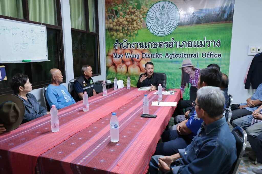 ส่วนในช่วงบ่าย ได้ประชุมชี้แจงโครงการฯ ให้เกษตรกรแกนนำผู้ปลูกลำไยพื้นที่อำเภอแม่วาง จำนวน 30 ราย ณ สำนักงานเกษตรอำเภอแม่วาง อ.แม่วาง จ.เชียงใหม่