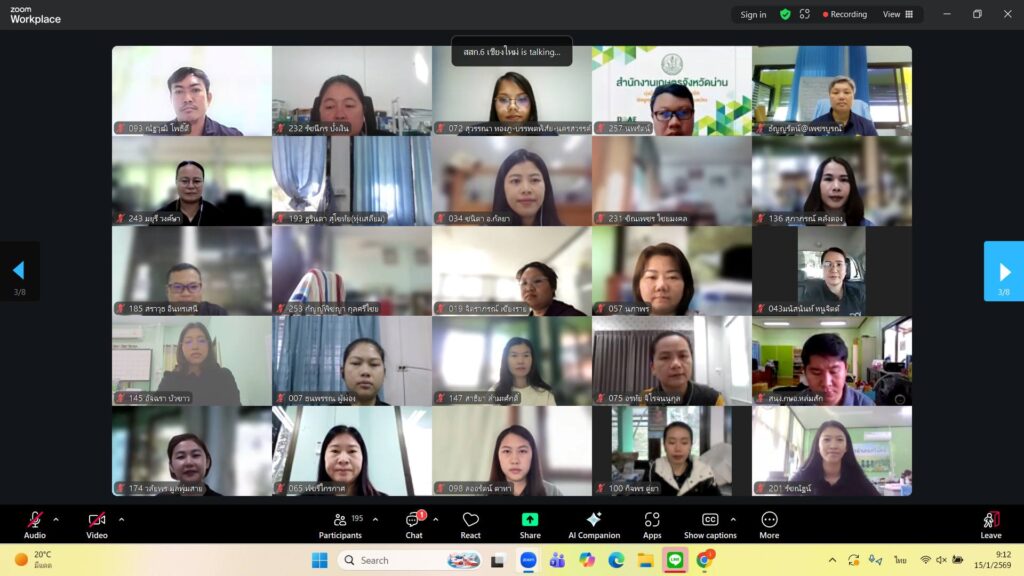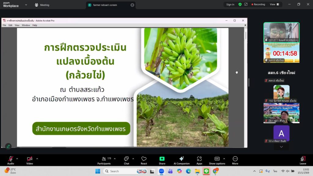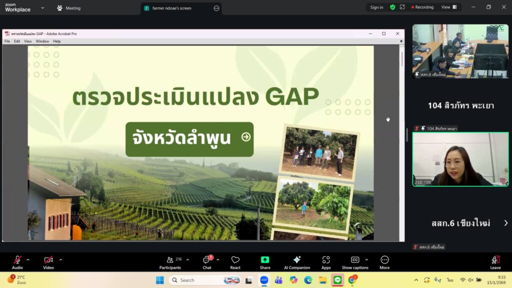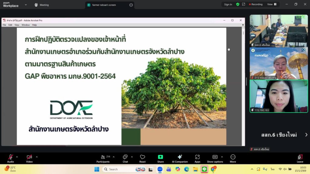 วันที่ 15 มกราคม 2569 สำนักงานส่งเสริมและพัฒนาการเกษตรที่ 6 จังหวัดเชียงใหม่ จัดอบรมเจ้าหน้าการอบรมพัฒนาเจ้าหน้าที่เป็นที่ปรึกษาเกษตรกรและเป็นวิทยากรด้านมาตรฐาน GAP ปีงบประมาณ พ.ศ. 2569 ครั้งที่ 2 ผ่านระบบออนไลน์ บุคคลเป้าหมาย ประกอบด้วย เจ้าหน้าที่ผู้รับผิดชอบงาน GAP ระดับจังหวัด 17 จังหวัด และระดับอำเภอ 196 อำเภอ ในพื้นที่ 17 จังหวัดภาคเหนือ จำนวน 213 คน โดยนางสาวอัญชลี ปัญญากวาว ผู้อำนวยการสำนักงานส่งเสริมและพัฒนาการเกษตรเขตที่ 6 จังหวัดเชียงใหม่ มอบหมายให้ นายพัชญ์ธน วิกัน ผู้อำนวยการกลุ่มยุทธศาสตร์และสารสนเทศ เป็นประธานเปิดการจัดอบรมฯ