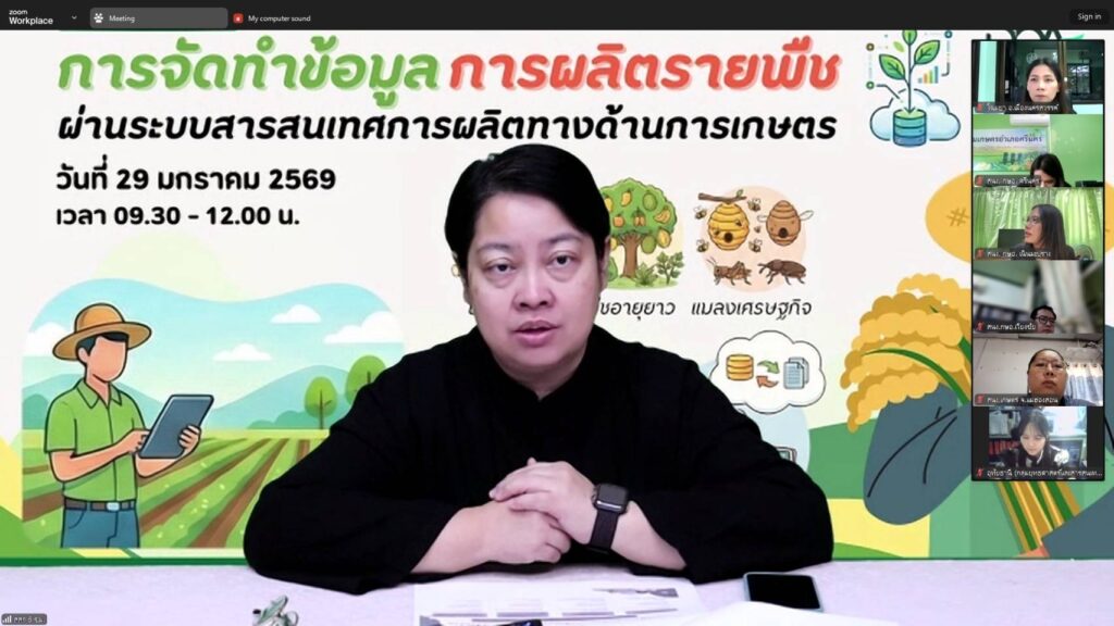 วันที่ 29 มกราคม 2569 สำนักงานส่งเสริมและพัฒนาการเกษตรที่ 6 จังหวัดเชียงใหม่ โดยกลุ่มพัฒนาบุคลากร จัดการฝึกอบรมตามแผนพัฒนาบุคลากรแบบมีส่วนร่วม ประจำปีงบประมาณ 2569 ครั้งที่ 1 หลักสูตร “การจัดทำข้อมูลการผลิตรายพืช ผ่านระบบสารสนเทศการผลิตทางด้านการเกษตร” ผ่านระบบออนไลน์ ณ ห้องถ่ายทอดออนไลน์ ชั้น 2 สำนักงานส่งเสริมและพัฒนาการเกษตรที่ 6 จังหวัดเชียงใหม่ และสำนักงานที่ตั้งของผู้เข้ารับการอบรม โดยมีนายสรายุทธ สิริภูษิต ผู้อำนวยการกลุ่มวิเคราะห์ข้อมูลสารสนเทศ ศูนย์เทคโนโลยีสารสนเทศและการสื่อสาร กรมส่งเสริมการเกษตร และคณะ เป็นวิทยากรให้ความรู้