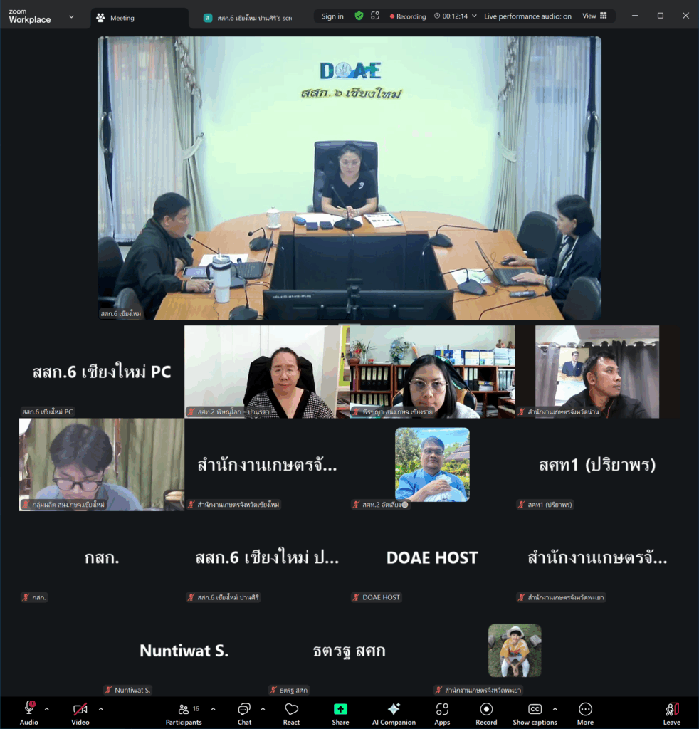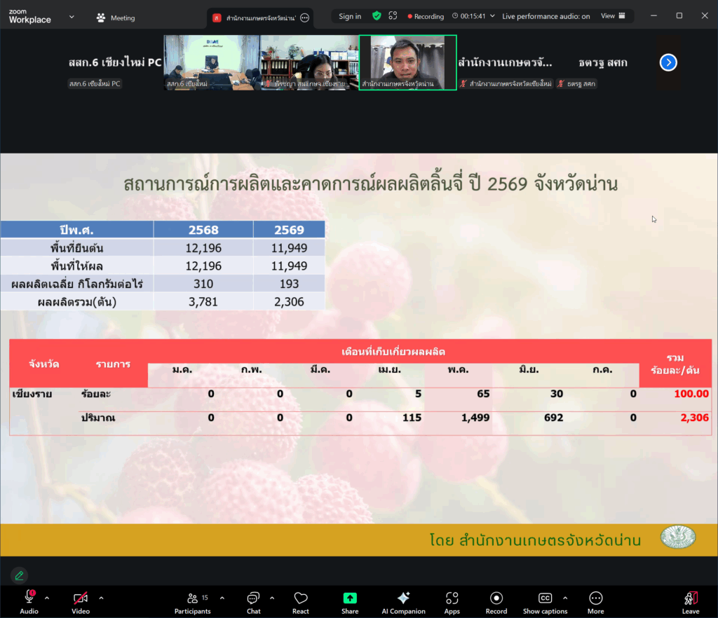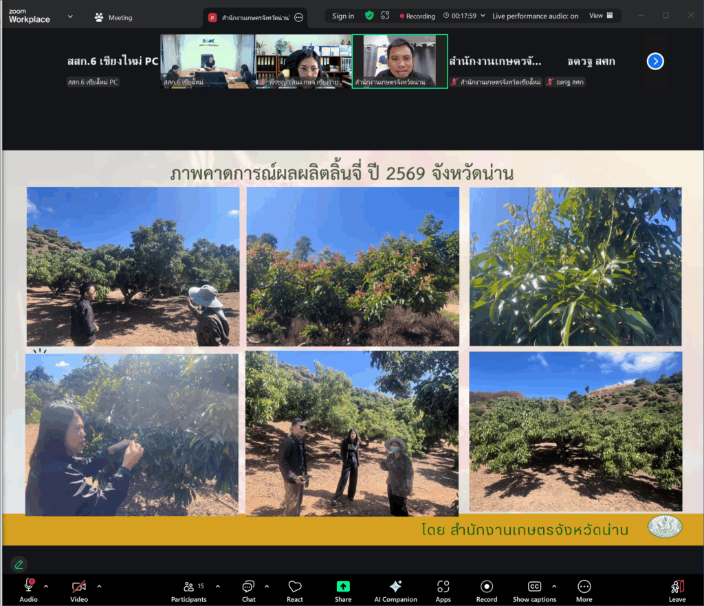 วันที่ 4 กุมภาพันธ์ 2569 นางสาวอัญชลี ปัญญากวาว ผู้อำนวยการสำนักงานส่งเสริมและพัฒนาการเกษตรที่ 6 จังหวัดเชียงใหม่ เป็นประธานในการสัมมนา โดยมีนายจาตุรนต์ สุวรรณพินท์ นักวิชาการเกษตรชำนาญการพิเศษ ปฏิบัติหน้าที่แทนผู้อำนวยการกลุ่มส่งเสริมและพัฒนาการผลิต พร้อมด้วยผู้แทนจากสำนักงานเศรษฐกิจการเกษตรที่ 1 จังหวัดเชียงใหม่ สำนักงานเศรษฐกิจการเกษตรที่ 2 จังหวัดพิษณุโลก สำนักงานเกษตรจังหวัดภาคเหนือ และเจ้าหน้าที่ผู้เกี่ยวข้อง เข้าร่วมสัมมนาเชิงปฏิบัติการ “การจัดทำข้อมูลเอกภาพ ครั้งที่ 1/2569 (ลิ้นจี่)” ดังกล่าว ผ่านระบบออนไลน์ โดยการสัมมนาในครั้งนี้จัดขึ้นเพื่อสร้างความเชื่อมโยงและบูรณาการในการจัดทำข้อมูลไม้ผลเศรษฐกิจภาคเหนือระหว่างหน่วยงานต่างๆนำไปสู่ฐานข้อมูลขนาดใหญ่ที่มีความครบถ้วน ถูกต้อง แม่นยำ และมีความเป็นเอกภาพ ทั้งข้อมูลด้านการผลิต การตลาด ที่มีความสอดคล้องกับบริบทที่เปลี่ยนแปลงตามสภาพแวดล้อมและระบบนิเวศของแต่ละพื้นที่ รวมถึงการนำข้อมูลไปใช้ในการประมาณการผลผลิตเพื่อกำหนดแนวทางการบริหารจัดการข้อมูลตลอดห่วงโซ่อุปทานต่อไป