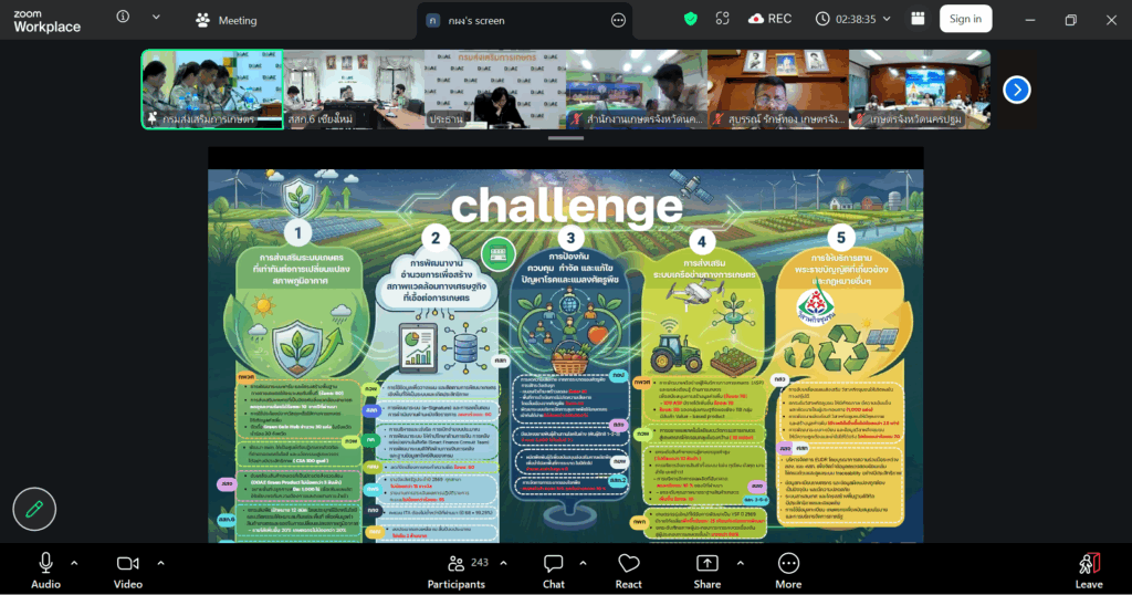 วันที่ 30 มีนาคม 2569 นางสาวอัญชลี ปัญญากวาว ผู้อำนวยการสำนักงานส่งเสริมและพัฒนาการเกษตรที่ 6 จังหวัดเชียงใหม่ พร้อมด้วยผู้อำนวยการกลุ่ม หัวหน้าฝ่ายบริหารทั่วไป และผู้เกี่ยวข้อง เข้าร่วมประชุมผู้บริหารกรมส่งเสริมการเกษตร ครั้งที่ 3/2569 ผ่านระบบออนไลน์ ณ ห้องประชุมสำนักงานส่งเสริมและพัฒนาการเกษตรที่ 6 จังหวัดเชียงใหม่ โดยมี นางอัญชลี สุวจิตตานนท์ อธิบดีกรมส่งเสริมการเกษตร เป็นประธานการประชุมฯ ทั้งนี้มีผู้บริหารกรมส่งเสริมการเกษตร ผู้อำนวยการกอง/สำนัก สำนักงานเกษตรจังหวัด และศูนย์ปฏิบัติการ เข้าร่วมการประชุม