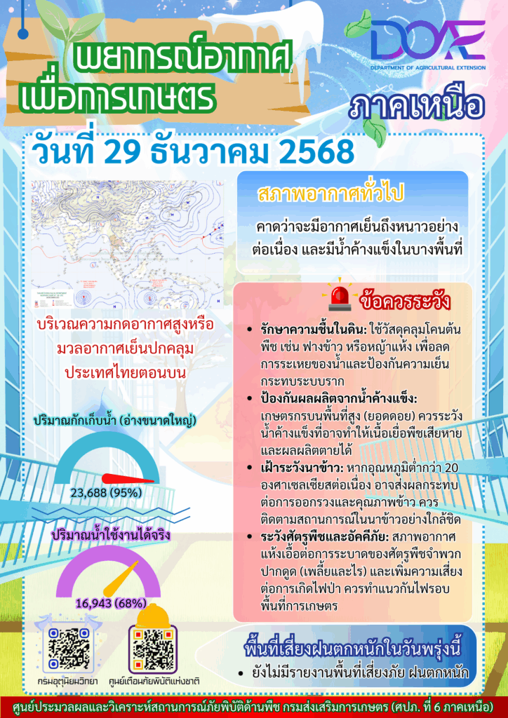 ข่าว Infoศปภ. ภาคเหนือ “พยากรณ์อากาศเพื่อการเกษตรภาคเหนือ” ประจำวันที่ 29 ธันวาคม 2568 admin_doae / 29 ธันวาคม 2025