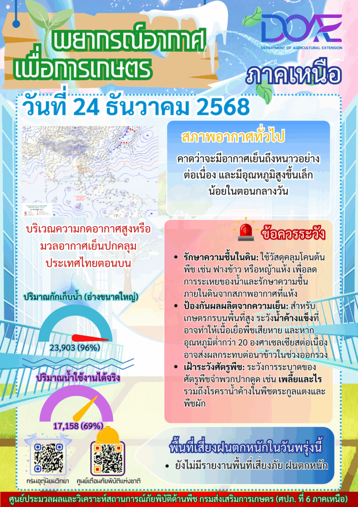 ข่าว Infoศปภ. ภาคเหนือ “พยากรณ์อากาศเพื่อการเกษตรภาคเหนือ” ประจำวันที่ 24 ธันวาคม 2568 admin_doae / 24 ธันวาคม 2025