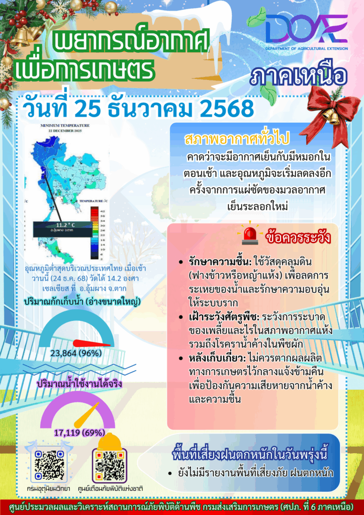 ข่าว Infoศปภ. ภาคเหนือ “พยากรณ์อากาศเพื่อการเกษตรภาคเหนือ” ประจำวันที่ 25 ธันวาคม 2568 admin_doae / 25 ธันวาคม 2025
