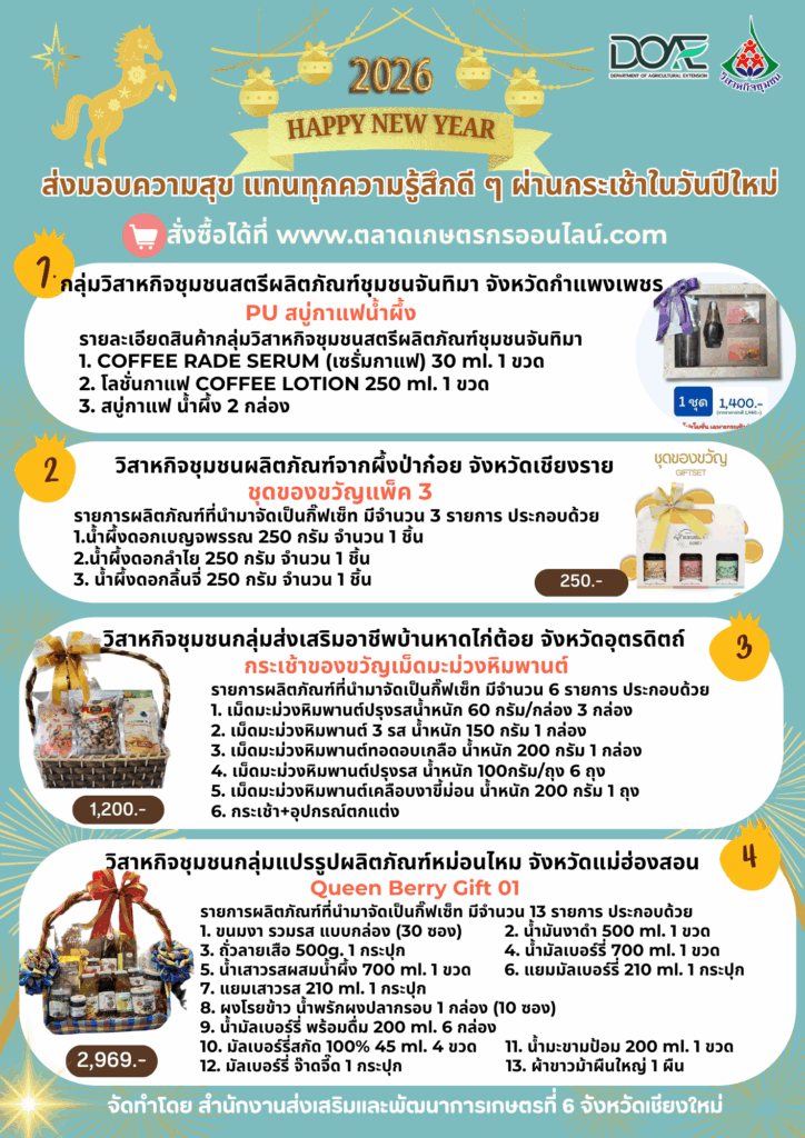ข่าว Infoเกษตรเขต 6 ส่งมอบความสุข แทนทุกความรู้สึกดีๆ ผ่านกระเช้าในวันปีใหม่ สั่งซื้อได้ที่ www.ตลาดเกษตรกรออนไลน์.com” admin_doae / 24 ธันวาคม 2025