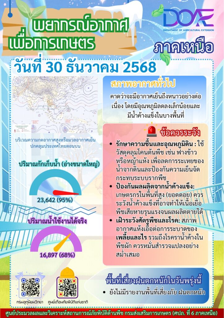 ข่าว Infoศปภ. ภาคเหนือ “พยากรณ์อากาศเพื่อการเกษตรภาคเหนือ” ประจำวันที่ 30 ธันวาคม 2568 admin_doae / 30 ธันวาคม 2025