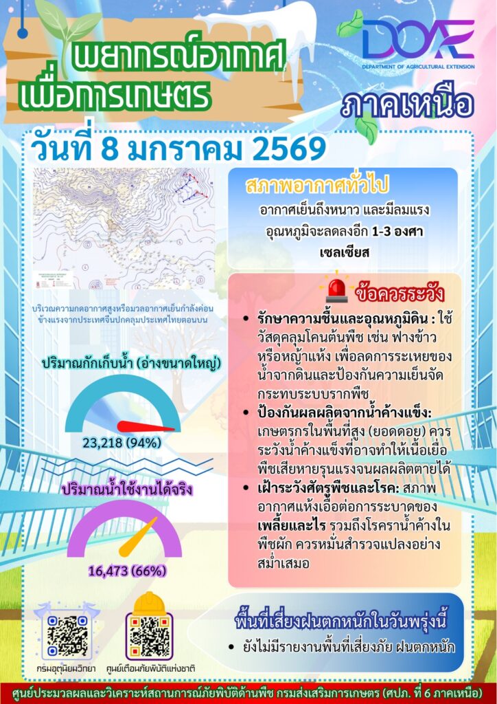 ข่าว Infoศปภ. ภาคเหนือ “พยากรณ์อากาศเพื่อการเกษตรภาคเหนือ” ประจำวันที่ 8 มกราคม 2569 admin_doae / 8 มกราคม 2026