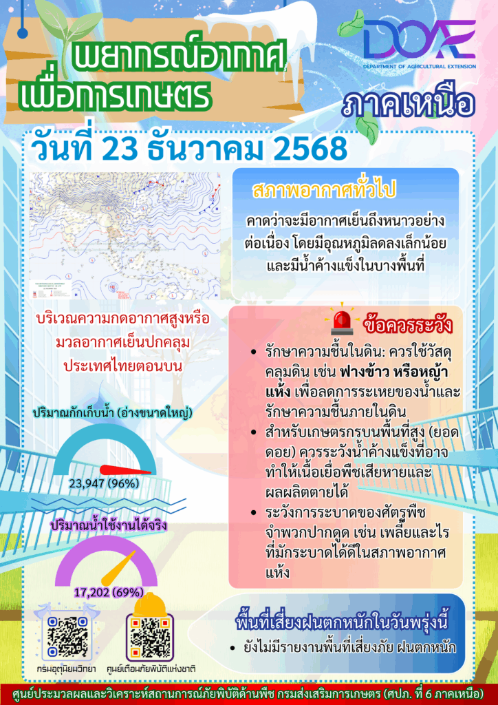 ข่าว Infoศปภ. ภาคเหนือ “พยากรณ์อากาศเพื่อการเกษตรภาคเหนือ” ประจำวันที่ 23 ธันวาคม 2568 admin_doae / 23 ธันวาคม 2025