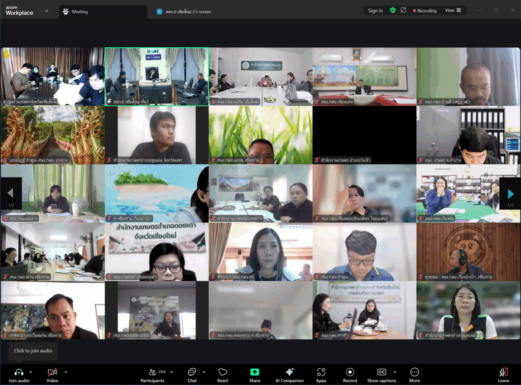 ข่าวประชาสัมพันธ์สสก.6 จ.เชียงใหม่ ร่วมประชุมติดตามผลการดำเนินงานตามมติคณะรัฐมนตรี เรื่อง ข้อเสนอการแก้ไขปัญหาฝุ่นละอองขนาดเล็ก (PM 2.5) ภาคเกษตรกรรมและภาคป่าไม้ ในพื้นที่ปฏิบัติการนวัตกรรมภาครัฐ จังหวัดเชียงใหม่ admin_doae / 20 พฤศจิกายน 2025 วันที่ 19 พฤศจิกายน