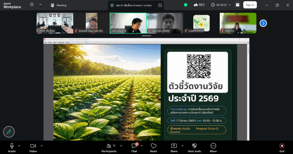 ข่าวประชาสัมพันธ์สสก.6 เชียงใหม่ ประชุมขับเคลื่อนงานวิชาการส่งเสริมการเกษตร ระดับเขต admin_doae / 23 มีนาคม 2026 วันที่ 17 มีนาคม 256