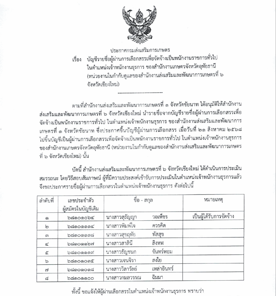 ข่าวรับสมัครงานประกาศกรมส่งเสริมการเกษตร เรื่อง บัญชีรายชื่อผู้ผ่านการเลือกสรรเพื่อจัดจ้างเป็นพนักงานราชการทั่วไป ในตำแหน่งเจ้าพนักงานธุรการ ของสำนักงานเกษตรจังหวัดอุทัยธานี(หน่วยงานในกำกับดูแลของสำนักงานส่งเสริมและพัฒนาการเกษตรที่ 6จังหวัดเชียงใหม่) admin_doae / 24 พฤศจิกายน 2025