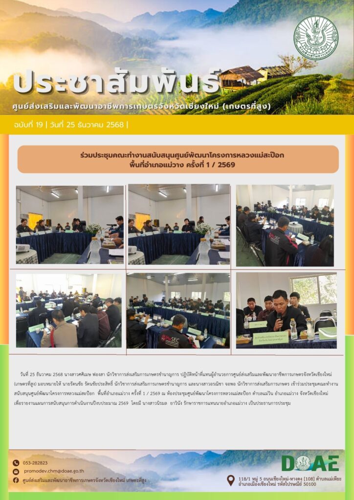 ร่วมประชุมคณะทำงานสนับสนุนศูนย์พัฒนาโครงการหลวงแม่สะป๊อก พื้นที่อำเภอแม่วาง ครั้งที่ 1 / 2569By haec03 / 26 ธันวาคม 2025