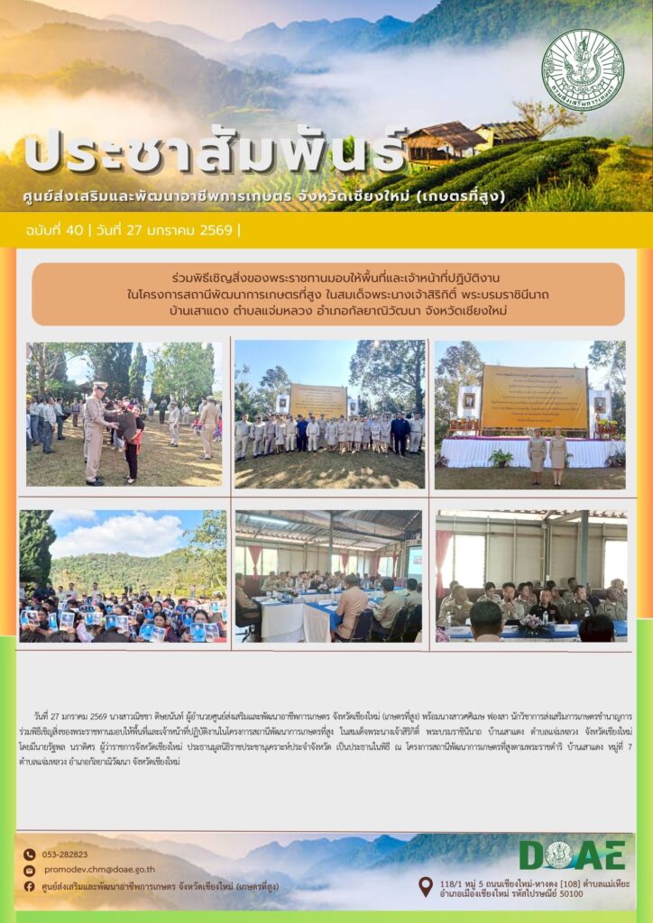 ร่วมพิธีเชิญสิ่งของพระราชทานมอบให้พื้นที่และเจ้าหน้าที่ปฏิบัติงาน ในโครงการสถานีพัฒนาการเกษตรที่สูง ในสมเด็จพระนางเจ้าสิริกิติ์ พระบรมราชินีนาถ บ้านเสาแดง ตำบลแจ่มหลวง อำเภอกัลยาณิวัฒนา จังหวัดเชียงใหม่By haec03 / 28 มกราคม 2026