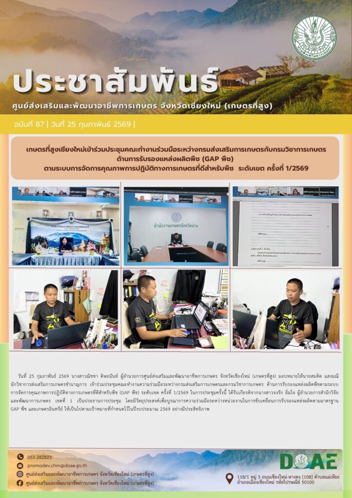 เกษตรที่สูงเชียงใหม่เข้าร่วมประชุมคณะทำงานร่วมมือระหว่างกรมส่งเสริมการเกษตรกับกรมวิชาการเกษตร ด้านการรับรองแหล่งผลิตพืช (GAP พืช) ตามระบบการจัดการคุณภาพการปฏิบัติทางการเกษตรที่ดีสำหรับพืชระดับเขต ครั้งที่ 1/2569By haec03 / 25 กุมภาพันธ์ 2026