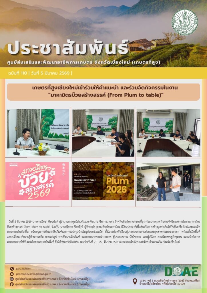 เกษตรที่สูงเชียงใหม่เข้าร่วมให้คำแนะนำ และร่วมจัดกิจกรรมในงาน“มาหามิตรบ๊วยสร้างสรรค์ (From Plum to table)”By haec03 / 5 มีนาคม 2026