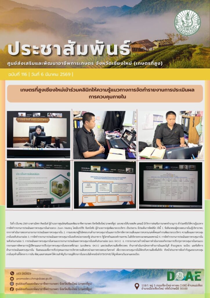เกษตรที่สูงเชียงใหม่เข้าร่วมคลินิกให้ความรู้แนวทางการจัดทำรายงานการประเมินผลการควบคุมภายในBy haec03 / 6 มีนาคม 2026