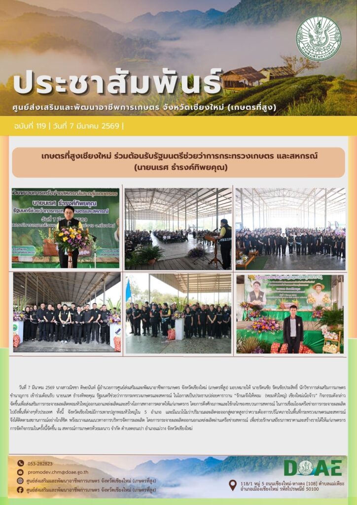 เกษตรที่สูงเชียงใหม่ ร่วมต้อนรับรัฐมนตรีช่วยว่าการกระทรวงเกษตร และสหกรณ์(นายนเรศ ธำรงค์ทิพยคุณ)By haec03 / 7 มีนาคม 2026