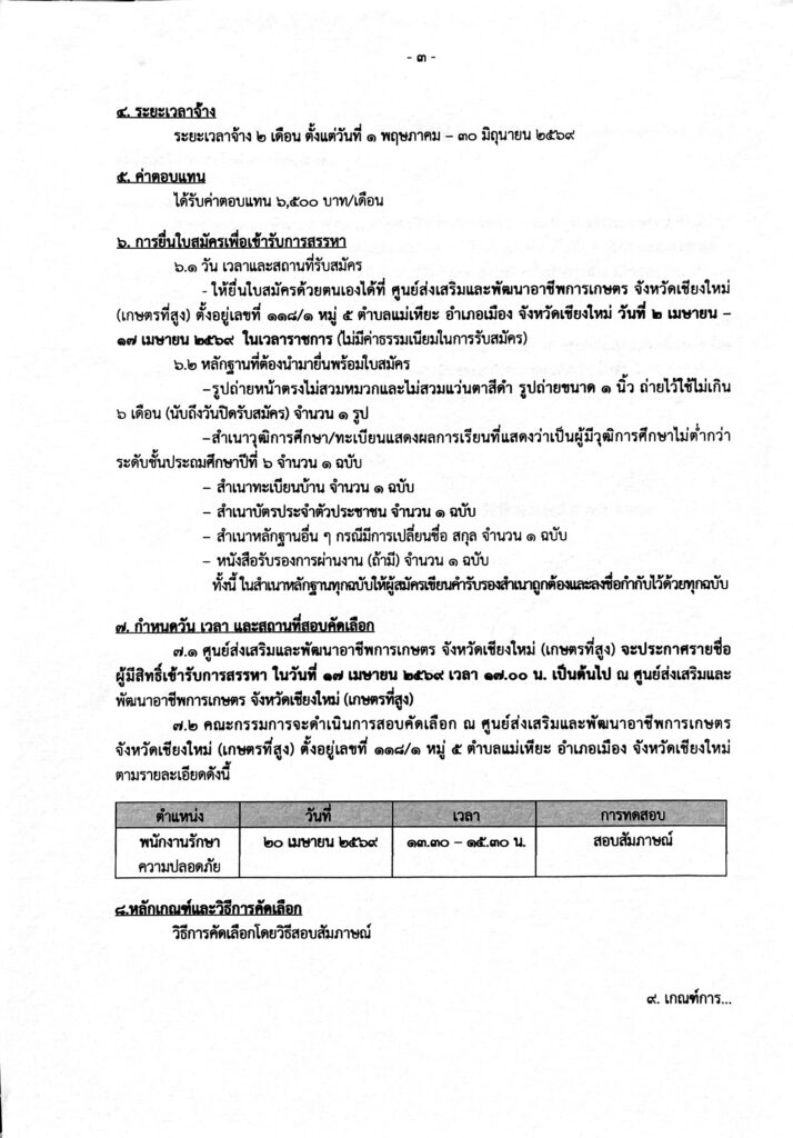 Previous 📣รับสมัครสอบคัดเลือกเพื่อเป็นพนักงานจ้างเหมาบริการ ตำแหน่งพนักงานขับรถยนต์ราชการ 2 อัตรา- ได้รับค่าตอบแทน 9,000 บาท/เดือน- ระยะเวลาจ้าง 2 เดือน ตั้งแต่วันที่ 1 พฤษภาคม 2569 – 30 มิถุนายน 2569📌สามารถมาสมัครด้วยตนเองที่ ศูนย์ส่งเสริมและพัฒนาอาชีพการเกษตร จังหวัดเชียงใหม่ (เกษตรที่สูง) ตั้งอยู่เลขที่ 118/1 หมู่ 5 ตำบลแม่เหียะ อำเภอเมือง จังหวัดเชียงใหม่ วันที่ 1 เมษายน –17 เมษายน 2569 ในเวลาราชการ (ไม่มีค่าธรรมเนียมในการรับสมัคร)📞โทรสอบถามเพิ่มเติม 053-282823