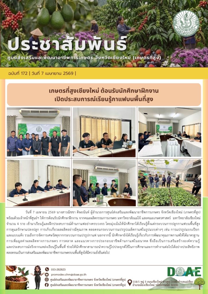 เกษตรที่สูงเชียงใหม่ ต้อนรับนักศึกษาฝึกงานเปิดประสบการณ์เรียนรู้กาแฟบนพื้นที่สูงBy haec03 / 7 เมษายน 2026