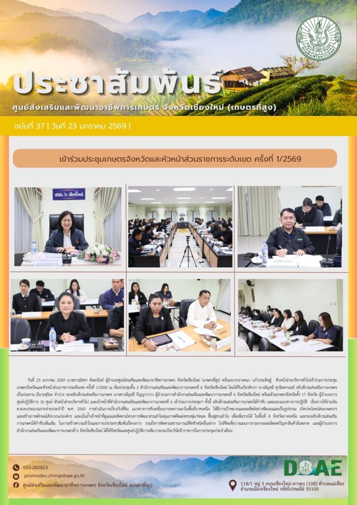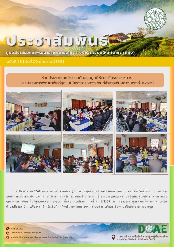 ข่าวประชาสัมพันธ์ร่วมประชุมคณะทำงานสนับสนุนศูนย์พัฒนาโครงการหลวงและโครงการพัฒนาพื้นที่สูงแบบโครงการหลวง พื้นที่อำเภอเชียงดาว ครั้งที่ 1/2569 haec03 / 21 มกราคม 2026