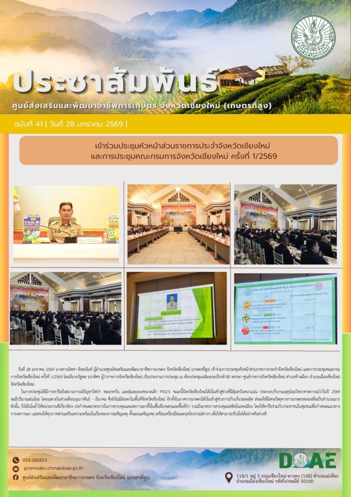 ข่าวประชาสัมพันธ์เข้าร่วมประชุมหัวหน้าส่วนราชการประจำจังหวัดเชียงใหม่ และการประชุมคณะกรมการจังหวัดเชียงใหม่ ครั้งที่ 1/2569 haec03 / 28 มกราคม 2026