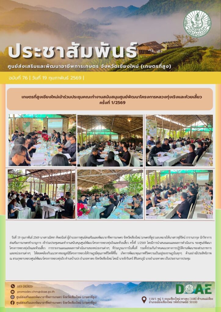 ข่าวประชาสัมพันธ์เกษตรที่สูงเชียงใหม่เข้าร่วมประชุมคณะทำงานสนับสนุนศูนย์พัฒนาโครงการหลวงแม่ทาเหนือและศูนย์พัฒนาโครงการหลวงตีนตก ครั้งที่ 1/2569 haec03 / 18 กุมภาพันธ์ 2026