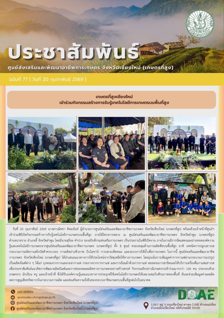 ข่าวประชาสัมพันธ์เกษตรที่สูงเชียงใหม่ เข้าร่วมกิจกรรมสร้างการรับรู้เทคโนโลยีการเกษตรบนพื้นที่สูง haec03 / 20 กุมภาพันธ์ 2026