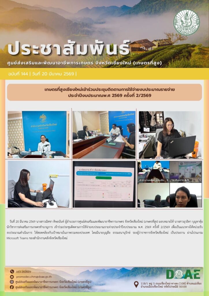 ข่าวประชาสัมพันธ์เกษตรที่สูงเชียงใหม่เข้าร่วมประชุมติดตามการใช้จ่ายงบประมาณรายจ่ายประจำปีงบประมาณพ.ศ 2569 ครั้งที่ 2/2569 haec03 / 20 มีนาคม 2026