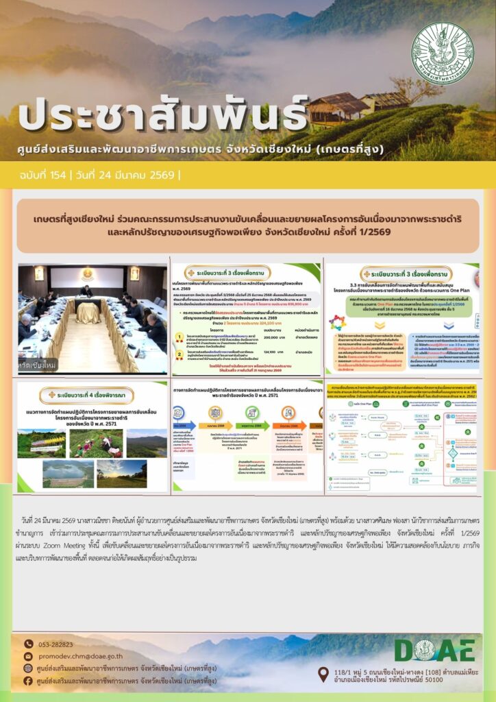 ข่าวประชาสัมพันธ์เกษตรที่สูงเชียงใหม่ร่วมประชุมชี้แจงประเด็น Challenge ของอธิบดีกรมส่งเสริมการเกษตร haec03 / 20 มีนาคม 2026