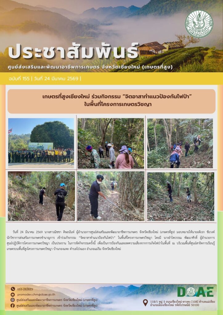 ข่าวประชาสัมพันธ์เกษตรที่สูงเชียงใหม่ ร่วมกิจกรรม “จิตอาสาทำแนวป้องกันไฟป่า”ในพื้นที่โครงการเกษตรวิชญา haec03 / 25 มีนาคม 2026