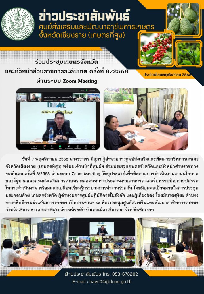 ร่วมประชุมคณะทำงานเพื่อการพิจารณาคำขอ ตรวจสอบควบคุมคุณภาพ และแหล่งที่มาของสิ่งบ่งชี้ทางภูมิศาสตร์ “ชาเชียงราย” ครั้งที่ 3/2568