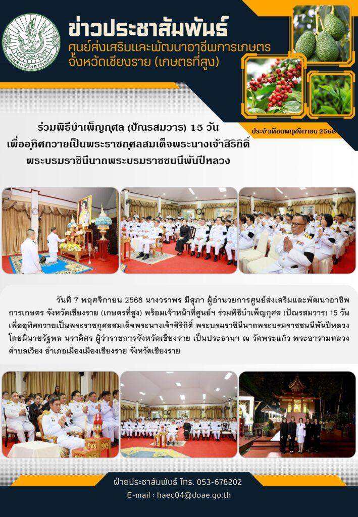 ร่วมพิธีบำเพ็ญกุศล (ปัณรสมวาร) 15 วัน เพื่ออุทิศถวายเป็นพระราชกุศลสมเด็จพระนางเจ้าสิริกิติ์ พระบรมราชินีนาถพระบรมราชชนนีพันปีหลวงBy haec04 / 12 พฤศจิกายน 2025