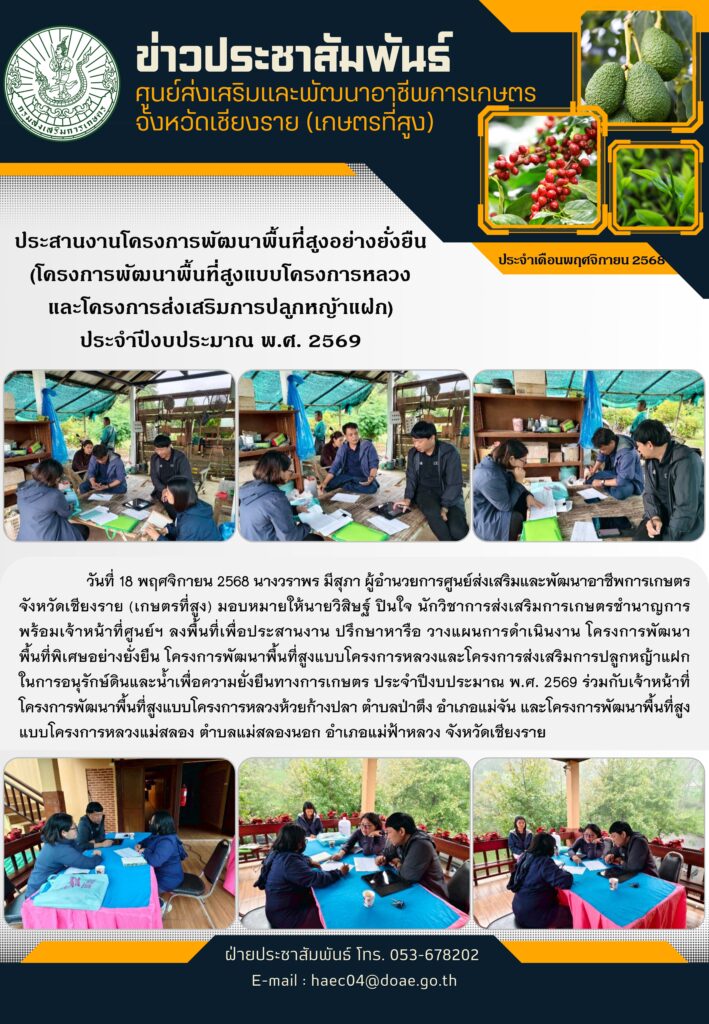 ประสานงาน และวางแผนการดำเนินงาน โครงการพัฒนาพื้นที่สูงแบบโครงการหลวงและโครงการส่งเสริมการปลูกหญ้าแฝกในการอนุรักษ์ดินและน้ำเพื่อความยั่งยืนทางการเกษตร ประจำปีงบประมาณ พ.ศ. 2569By haec04 / 21 พฤศจิกายน 2025