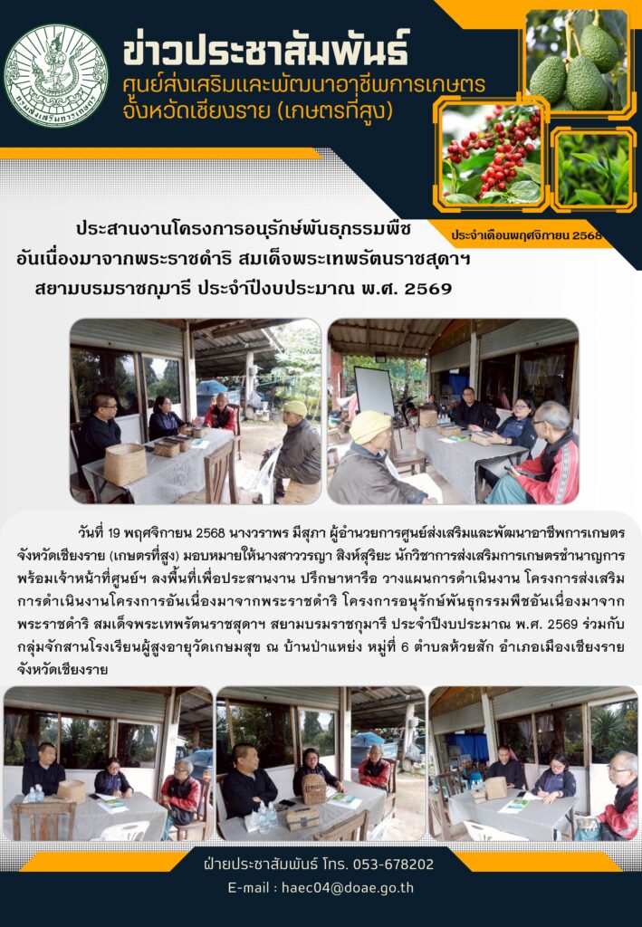 ประสานงาน และวางแผนการดำเนินงาน โครงการอนุรักษ์พันธุกรรมพืชอันเนื่องมาจากพระราชดำริ สมเด็จพระเทพรัตนราชสุดาฯ สยามบรมราชกุมารี ประจำปีงบประมาณ พ.ศ. 2569