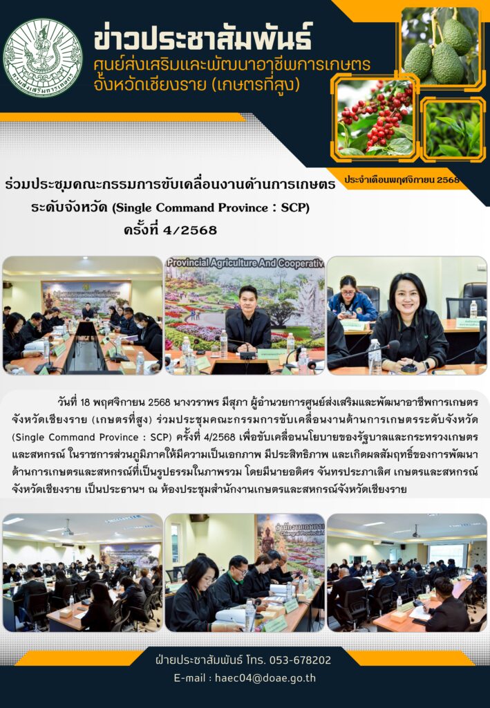ร่วมประชุมคณะกรรมการขับเคลื่อนงานด้านการเกษตรระดับจังหวัด (Single Command Province : SCP) ครั้งที่ 4/2568By haec04 / 21 พฤศจิกายน 2025