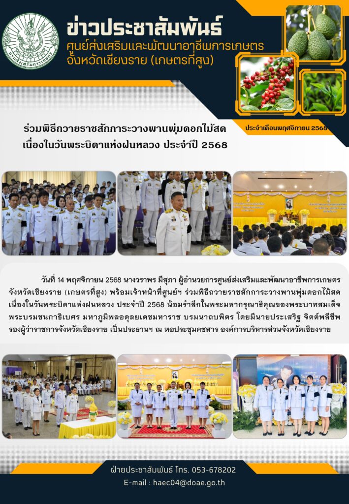 ร่วมพิธีถวายราชสักการะวางพานพุ่มดอกไม้สดเนื่องในวันพระบิดาแห่งฝนหลวง ประจำปี 2568By haec04 / 21 พฤศจิกายน 2025