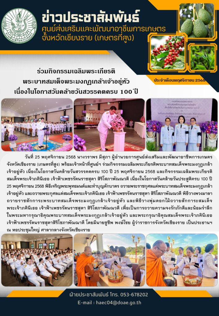 ร่วมกิจกรรมเฉลิมพระเกียรติพระบาทสมเด็จพระมงกุฎเกล้าเจ้าอยู่หัว เนื่องในโอกาสวันคล้ายวันสวรรคตครบ 100 ปี 25 พฤศจิกายน 2568