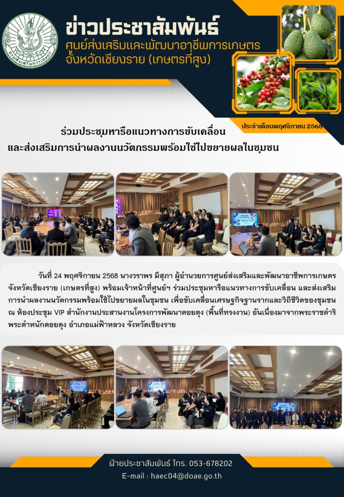 ร่วมประชุมหารือแนวทางการขับเคลื่อน และส่งเสริมการนำผลงานนวัตกรรมพร้อมใช้ไปขยายผลในชุมชน เพื่อขับเคลื่อนเศรษฐกิจฐานรากและวิถีชีวิตของชุมชน