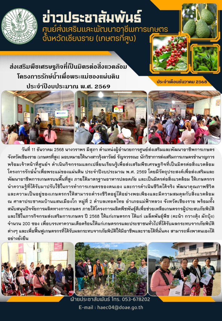 ดำเนินกิจกรรมแลกเปลี่ยนเรียนรู้เพื่อส่งเสริมพืชเศรษฐกิจที่เป็นมิตรต่อสิ่งแวดล้อม โครงการรักษ์น้ำเพื่อพระแม่ของแผ่นดิน ประจำปีงบประมาณ พ.ศ. 2569By haec04 / 23 ธันวาคม 2025