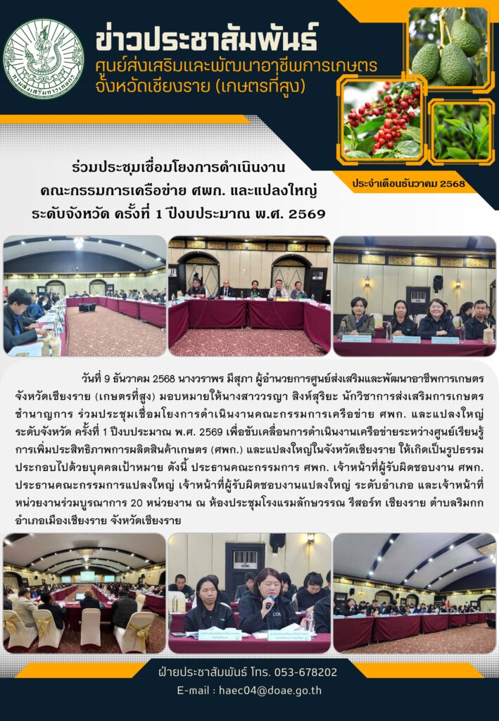 ร่วมประชุมเชื่อมโยงการดำเนินงานคณะกรรมการเครือข่าย ศพก. และแปลงใหญ่ ระดับจังหวัด ครั้งที่ 1 ปีงบประมาณ พ.ศ. 2569By haec04 / 23 ธันวาคม 2025