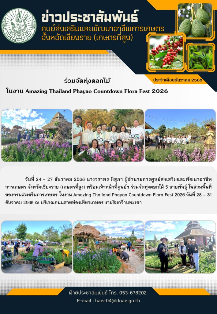 ร่วมจัดทุ่งดอกไม้ 5 สายพันธุ์ ในส่วนพื้นที่ของกรมส่งเสริมการเกษตร ในงาน Amazing Thailand Phayao Countdown Flora Fest 2026