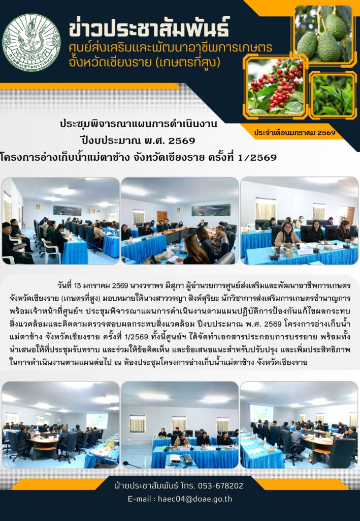 ประชุมพิจารณาแผนการดำเนินงานตามแผนปฏิบัติการป้องกันแก้ไขผลกระทบสิ่งแวดล้อมและติดตามตรวจสอบผลกระทบสิ่งแวดล้อม ปีงบประมาณ พ.ศ. 2569 โครงการอ่างเก็บน้ำแม่ตาช้าง