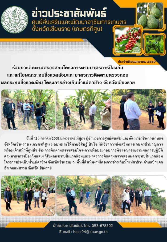 ร่วมการติดตามตรวจสอบโครงการเพื่อประกอบการพิจารณารายงานผลการปฏิบัติตามมาตรการป้องกันและแก้ไขผลกระทบสิ่งแวดล้อมและมาตรการติดตามตรวจสอบผลกระทบสิ่งแวดล้อม โครงการอ่างเก็บน้ำแม่ตาช้าง