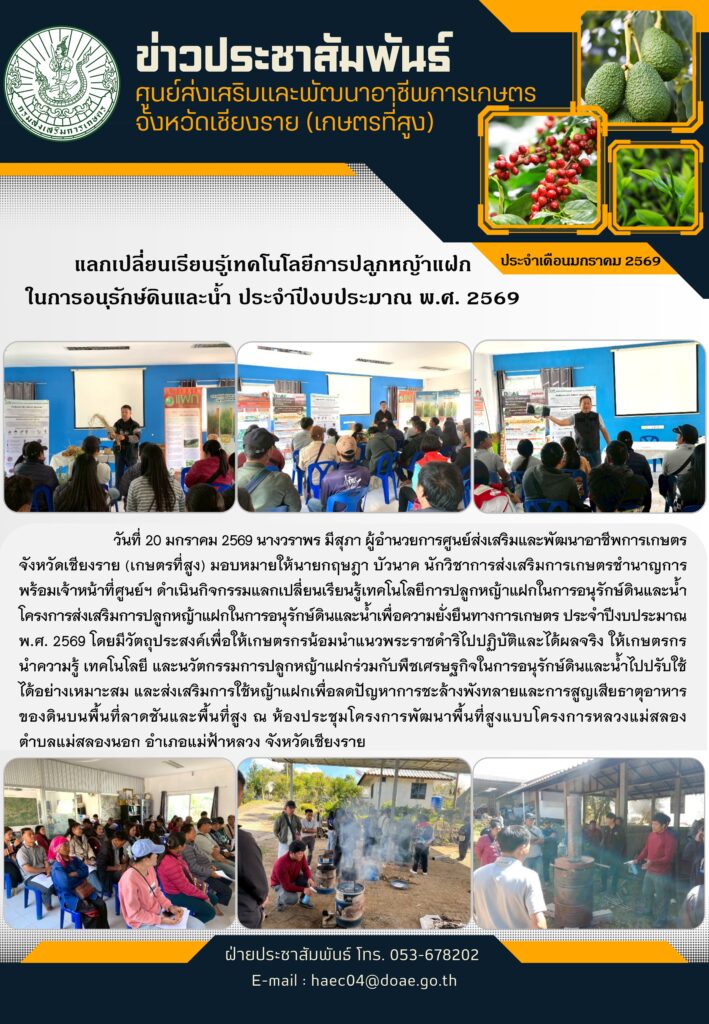 ดำเนินกิจกรรมแลกเปลี่ยนเรียนรู้เทคโนโลยีการปลูกหญ้าแฝกในการอนุรักษ์ดินและน้ำBy haec04 / 23 มกราคม 2026