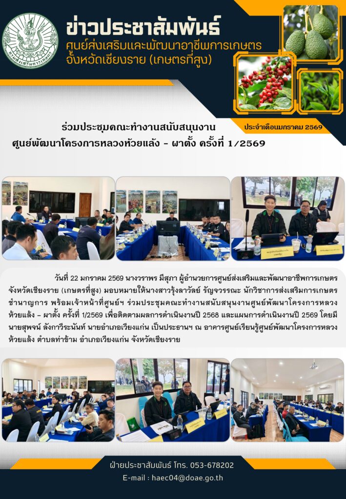 ร่วมประชุมคณะทำงานสนับสนุนงานศูนย์พัฒนาโครงการหลวงห้วยแล้ง – ผาตั้ง ครั้งที่ 1/2569By haec04 / 23 มกราคม 2026