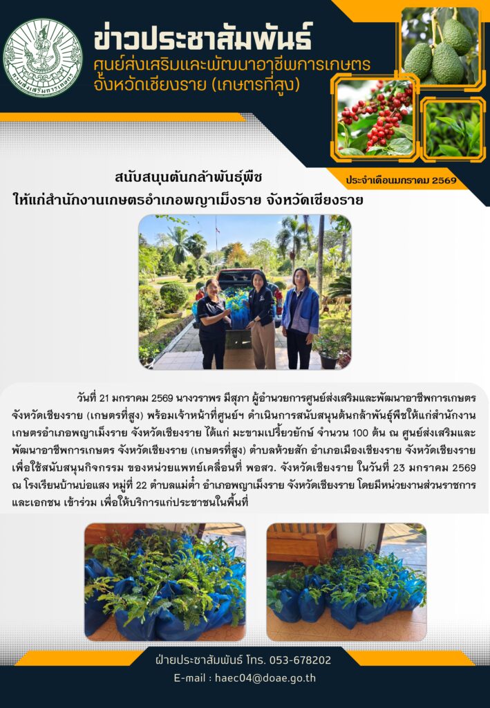 ดำเนินกิจกรรมแลกเปลี่ยนเรียนรู้เพื่อส่งเสริมพืชเศรษฐกิจบนพื้นที่สูงที่เป็นมิตรต่อสิ่งแวดล้อม โครงการพัฒนาพื้นที่สูงแบบโครงการหลวง ประจำปีงบประมาณ พ.ศ. 2569