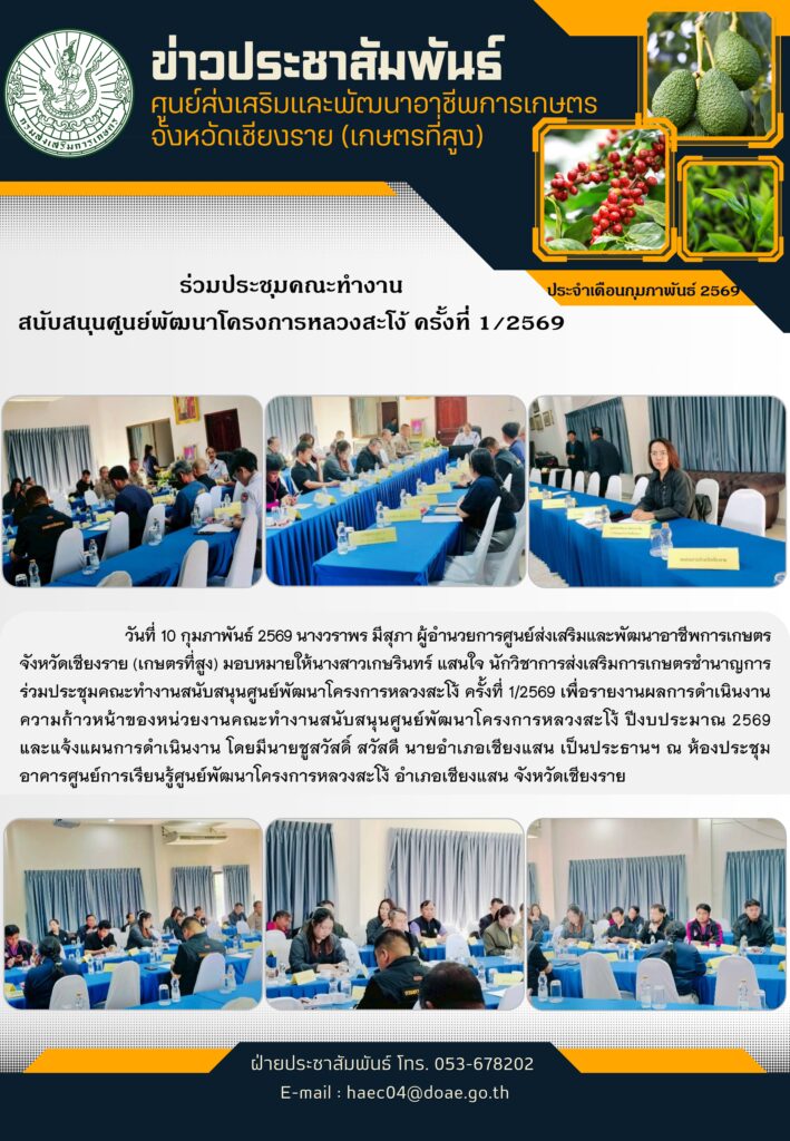 ศึกษาดูงานเกษตรบนพื้นที่สูง โครงการพัฒนาพื้นที่สูงอย่างยั่งยืน (โครงการหลวง) ประจำปีงบประมาณ พ.ศ.2569